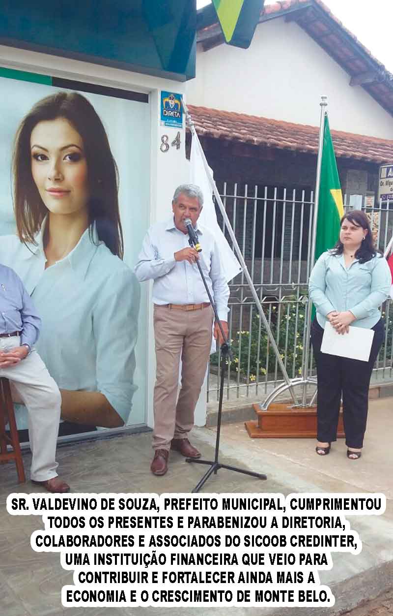 O Presidente do Conselho de Administração do SICOOB CREDINTER, Roberto Cleber Cunha Carvalho, recebeu os convidados e ressaltou a importância da reinauguração da agência na cidade, sendo mais uma grande conquista da instituição, que nasceu do idealismo e da coragem de seus fundadores, crescendo na confiança e na união de seus associados e colaboradores, expandindo seus limites, propagando e vivenciando os ideais do cooperativismo.