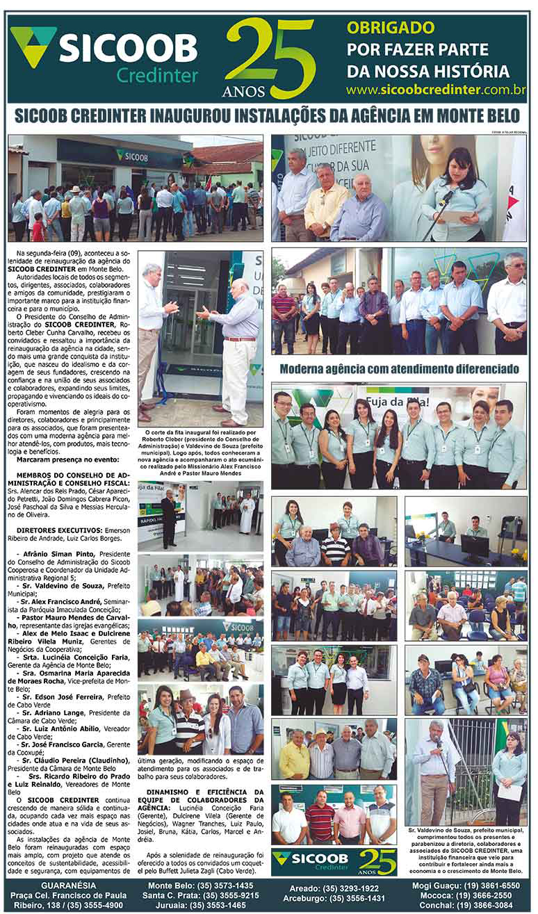 SICOOB CREDINTER inaugurou instalações da Agência em Monte Belo