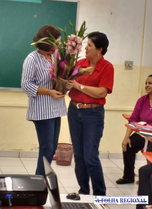 Para encerrar, a Secretária de Educação, Sra. Maria de Lourdes, entregou um arranjo de flores à Sra. Cristina Lúcia, em nome do Departamento de Educação de Nova Resende em forma de agradecimento por tão enriquecedora reunião.