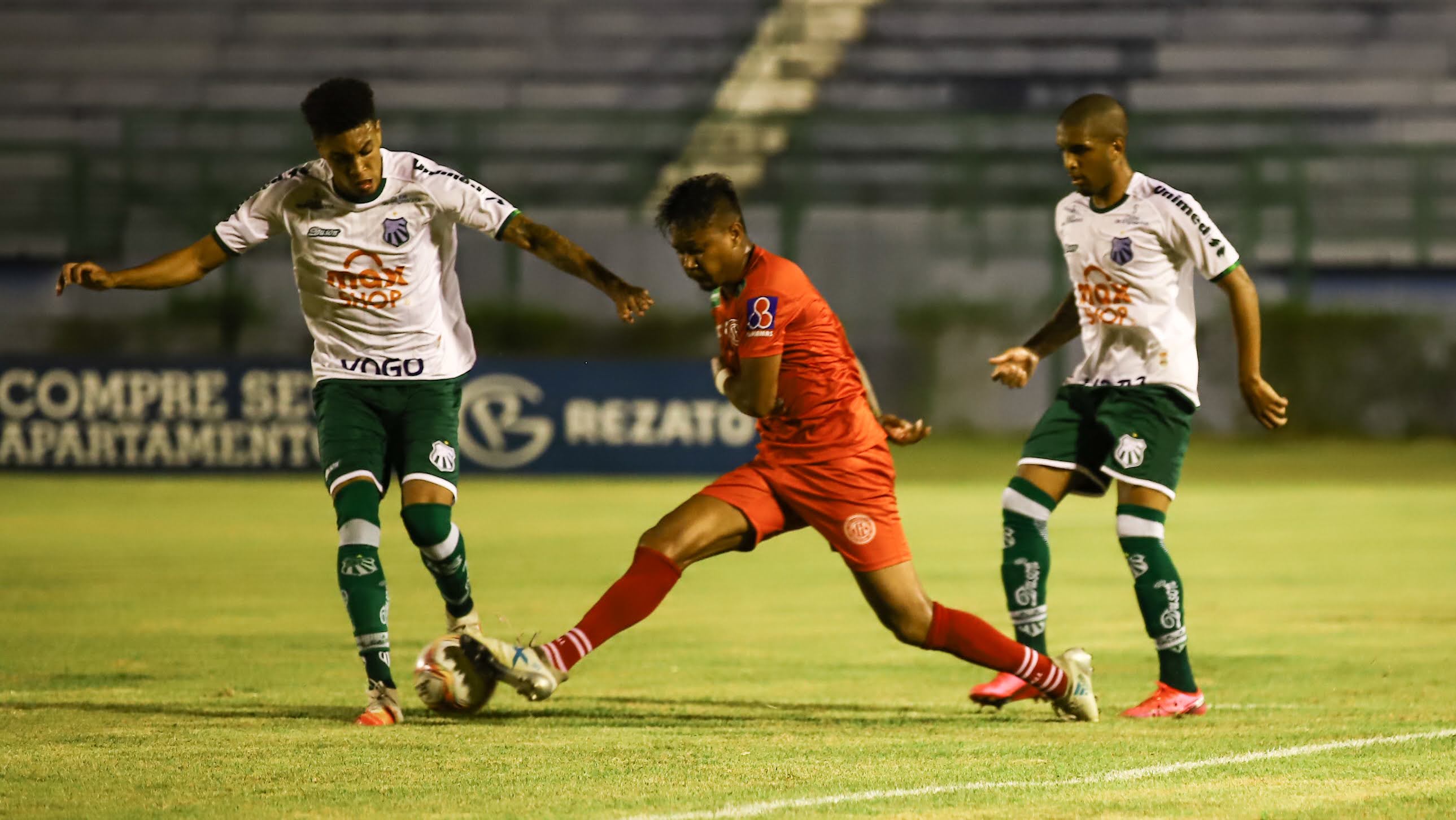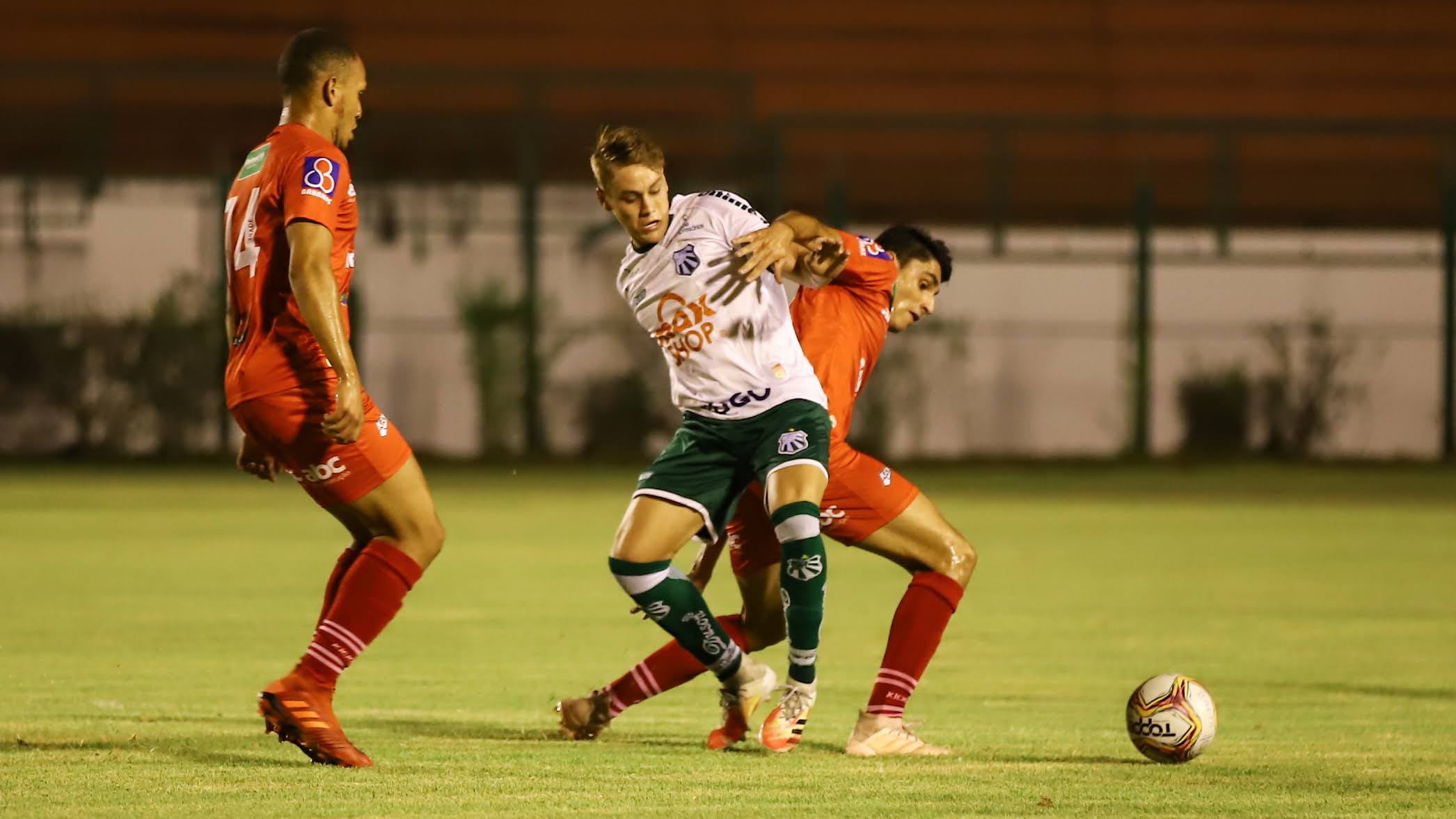 21, surgiu a melhor chance alviverde na partida. Igor Gomes bateu mascado