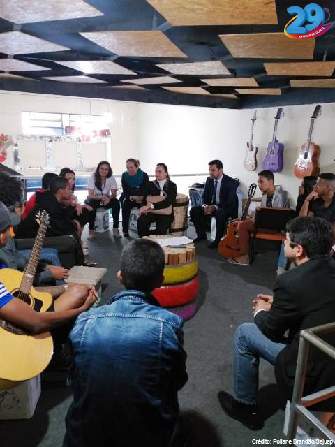Durante a manhã, as reuniões foram técnicas, para que a equipe pudesse compreender o funcionamento da gestão dos programas. Participaram a subsecretária, seus superintendentes e diretores. Além disso, a comitiva também se reuniu com a Diretoria de Apoio Operacional da Polícia Militar, responsável pela coordenação da Polícia Comunitária (Agrupamento Gepar – Grupo Especial de Policiamento em Área de Risco), que é parceira dos programas nas comunidades.