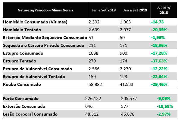 O comandante-geral da Polícia Militar de Minas Gerais, coronel Giovanne Gomes da Silva, também credita a histórica redução da criminalidade, principalmente em relação aos crimes violentos e homicídios, à integração dos órgãos de Segurança Pública, ressaltando ainda a atuação da Polícia Militar de forma mais ostensiva nas ruas das cidades mineiras.