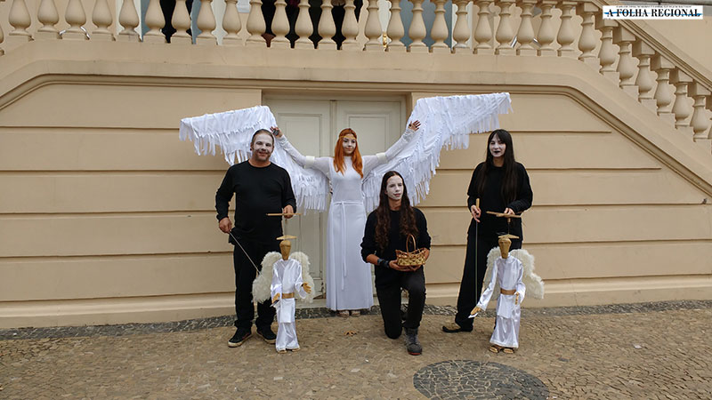 Com a performance “Marion”, de anjos marionetes, espalharam pela cidade mensagens de amor, paz, gratidão e perdão. As apresentações aconteceram na semana passada, promovidas pela Prefeitura de Poços de Caldas, através das Secretarias de Cultura e de Turismo. A equipe da Oficina da Terra art studio é formada pelos artistas Rô Lovato, Anderson Almeia, Kauan Caliari, Luiza de Almeida Cagnani, Kaique Caliari e conta com o apoio do fotógrafo Paulo Gustavo Sarges, da Cabaré Estúdio de Arte.
