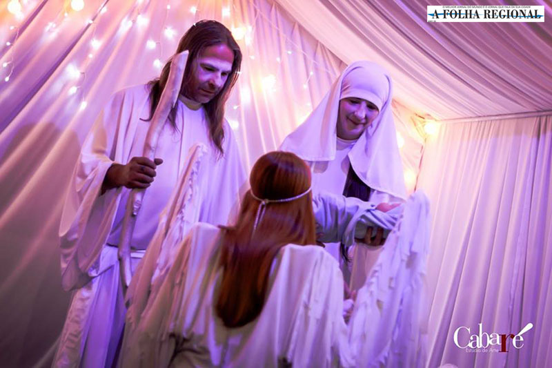 A direção do “Presépio da Paz”, é assinada pela diretora e dramaturga Juliana de Almeida, da Companhia Tema de Artes Cênicas. Os figurinos e acessórios de cena, como um anjo capaz de abrir suas enormes asas sobre a plateia, são criação dos também artistas plásticos Rô Lovato e Anderson Almeida, criadores da Oficina da Terra art studio. Eles ainda assinam a concepção “Marion”, uma performance de manipulação de bonecos, que pôde ser vista no último domingo, dia 18, na Vila de Natal, no entorno do Thermas Antonio Carlos.