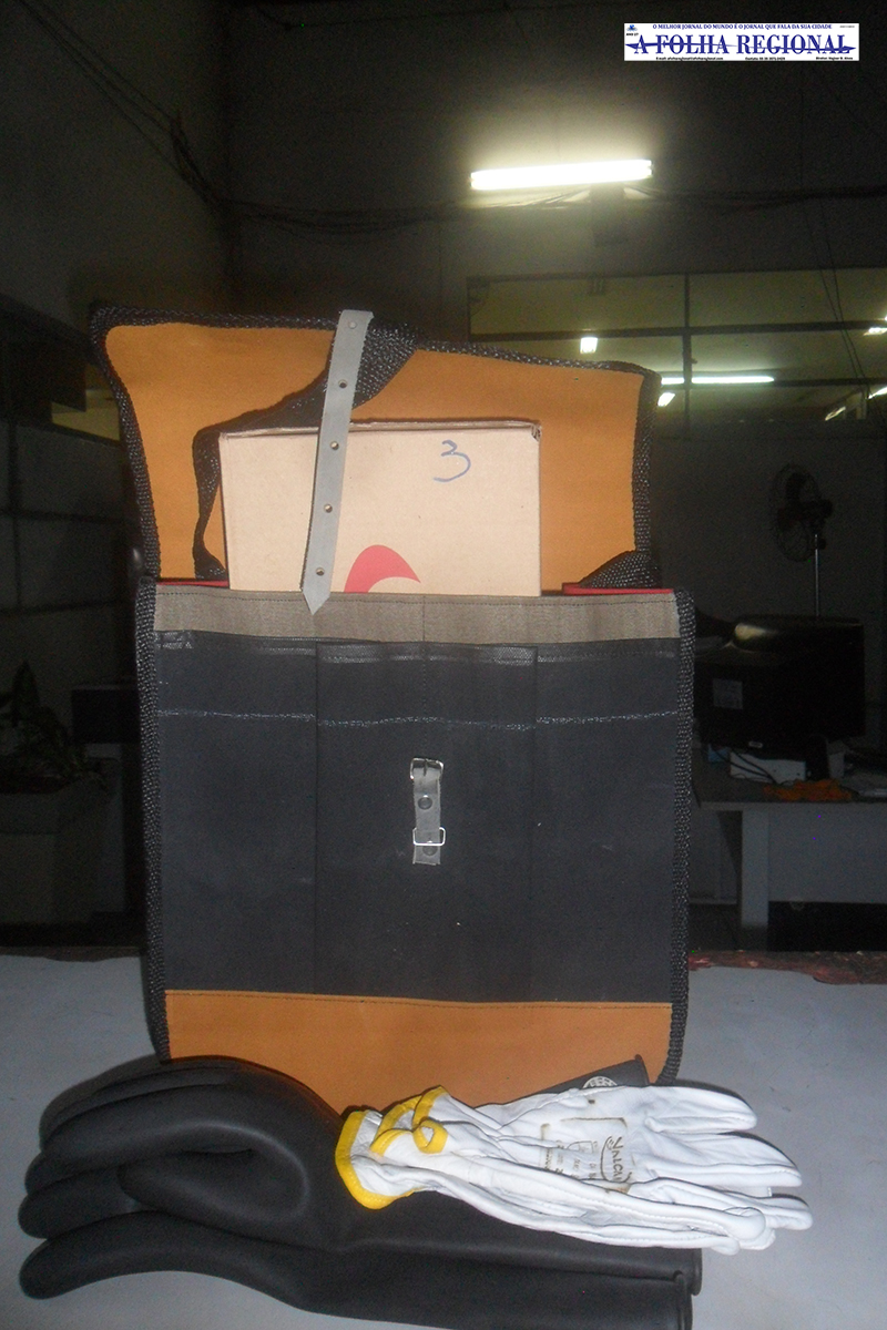 Também há um par de luvas simples, de couro e outra especial. A luva de segurança de alta resistência possui capacidade de suportar até mil watts. "Trata-se de um material que possui certificado através de um laudo que nos foi entregue junto com o manual de instrução", observa o secretário.