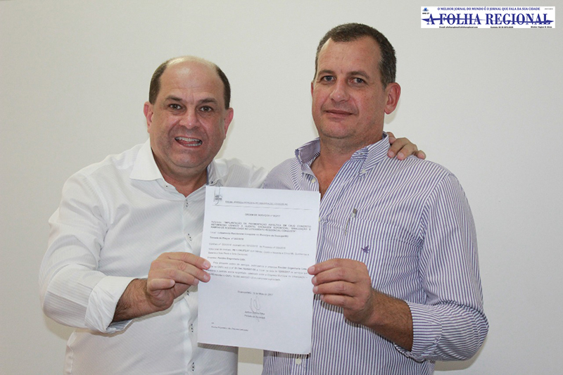 Na sexta-feira, 12 de maio, aconteceu no gabinete do prefeito a assinatura da ordem de serviço para o asfaltamento, construção de rampas de acessibilidade e também meio fio do residencial Conquista. O loteamento faz parte do Programa de Habitação Social do Governo Municipal. No local já foram concluídas as obras de galeria pluvial, rede de água potável e rede de esgoto. O início da pavimentação acontecerá nos próximos 10 dias.