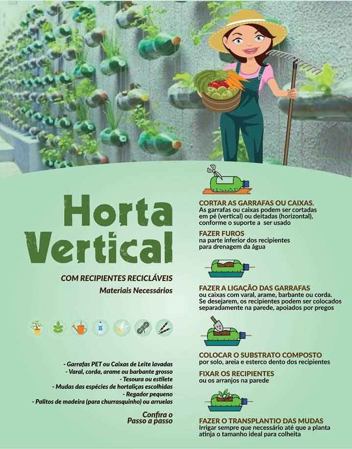 Quanto aos custos, Wânia aponta como muito baixos. “Somente as sementes ou mudas devem ser adquiridas no comércio. As embalagens (garrafas pet, latas e caixas de leite, etc.) e suportes (pallets, caixotes, telas etc.) podem ser conseguidos gratuitamente”, detalha.