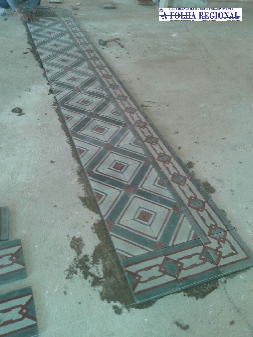 Continuam em ritmo acelerado as obras de reforma da Igreja Nossa Senhora Aparecida, em Muzambinho. O arquiteto Marco Aurélio Teixeira atua como colaborador e informou que já foi executado 90% do piso (ladrilho hidráulico), composto em três partes: página grande, elo (que emoldura o meio) e os cantos. A colocação do piso está sendo feita por profissional especializado. Os rodapés também já foram encomendados (granito/vermelhão) e deverão ser colocados num prazo estimado em dez dias. Todas as providências e ações estão sendo executadas para cumprir com fidelidade as exigências do Patrimônio Histórico.