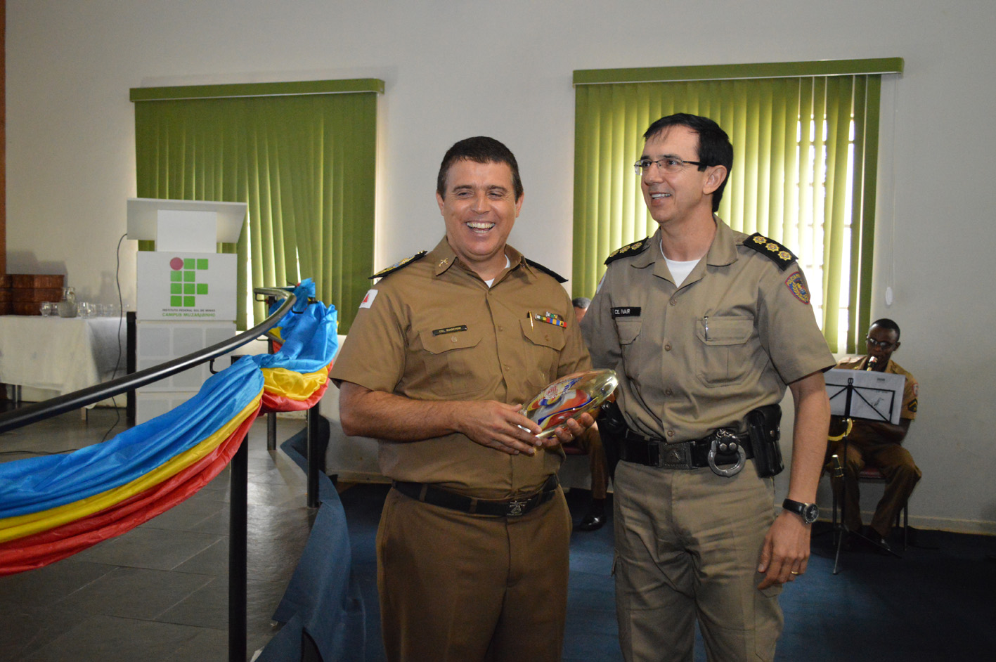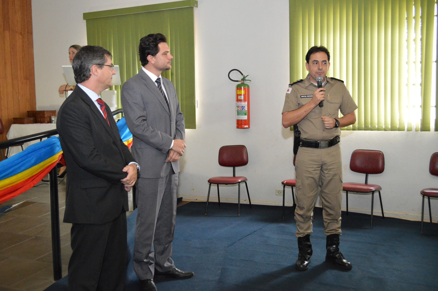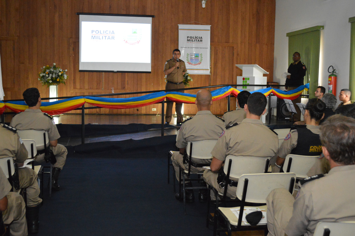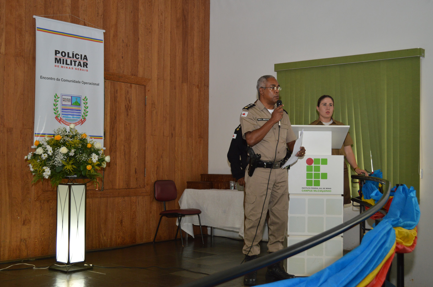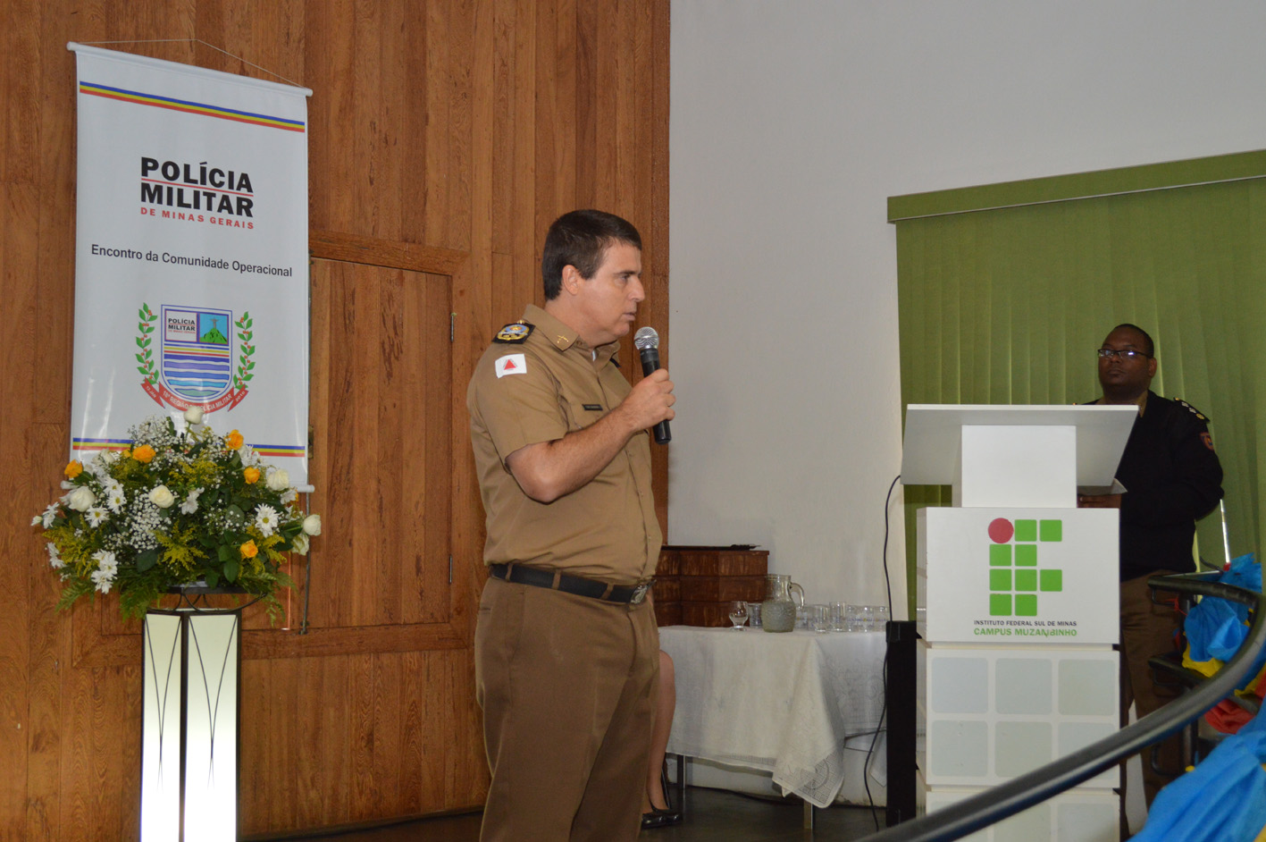 Na sexta-feira, 20/03, o IFSULDEMINAS Câmpus Muzambinho recebeu o 1º Encontro de Comunidade Operacional da 18ª Região da Polícia Militar de Minas Gerais (ECO 2015), composta por cidades das regiões de Poços de Caldas, Passos e Alfenas. Na reunião, que contou com a presença do comandante geral da Polícia Militar de Minas Gerais - PMMG, Coronel Bianchini, do Comandante da 18ª RPM Coronel Edilson Ivair Costa e do Diretor-Geral do IFSULDEMINAS - Câmpus Muzambinho, Prof. Luiz Carlos Machado Rodrigues e demais comandantes da região, foram apresentadas estratégias para reduzir a criminalidade.