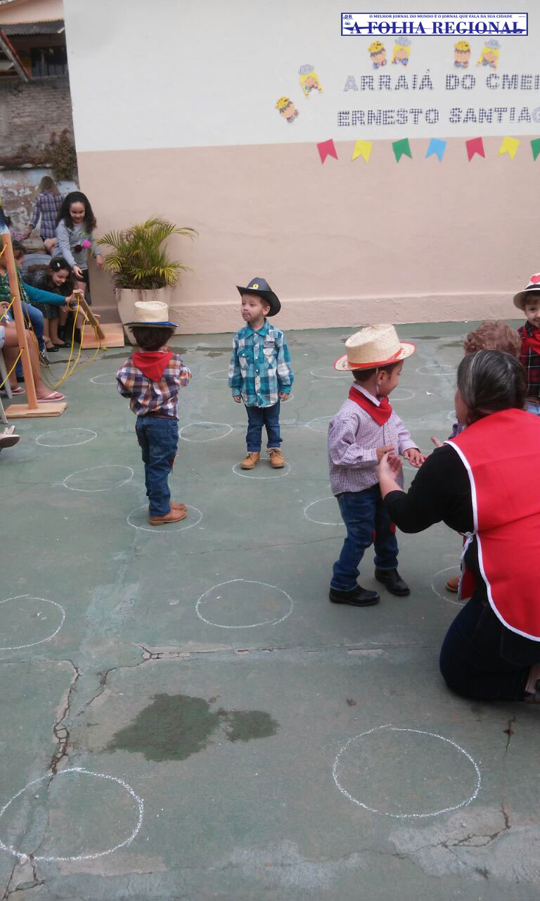 No último sábado, 16 de junho, o Centro Municipal de Educação Infantil “Ernesto Santiago” promoveu uma festa junina para reunir servidores, pais e alunos. Com decoração colorida e repleta de bandeirinhas, cerca de 300 crianças da Educação Infantil se apresentaram no local com danças típicas e usando trajes caipiras adequados à ocasião.