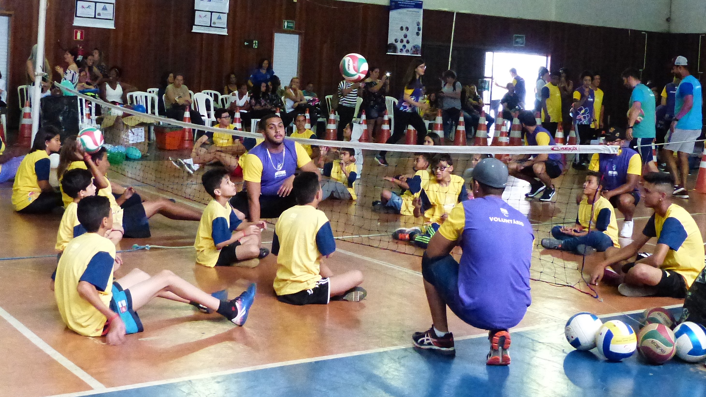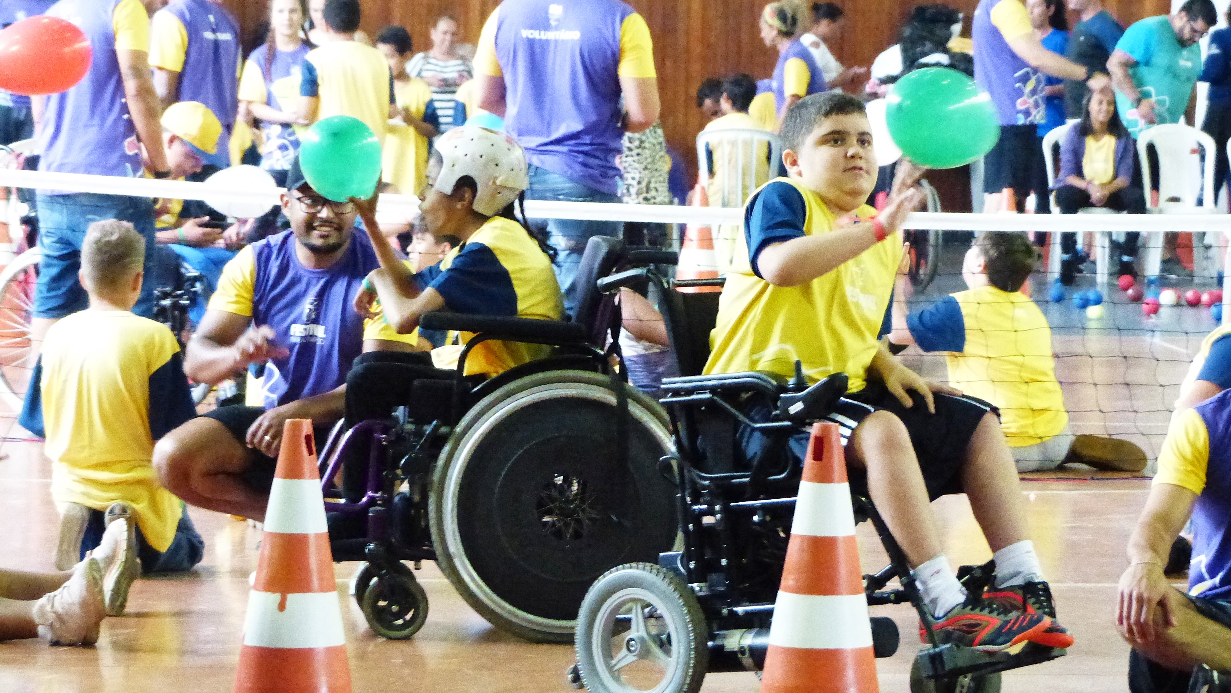 modalidades: bocha, vôlei sentado e goalball. As crianças sem deficiência