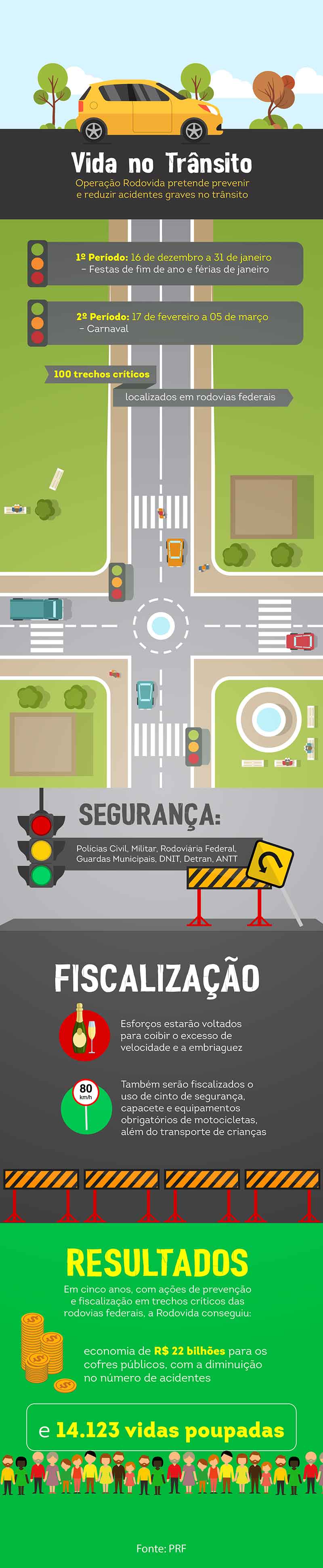 A campanha prevê o esforço integrado de vários órgãos federais, em articulação com estados e municípios. Estão envolvidos na iniciativa os ministérios de Justiça e Cidadania; Cidades; Saúde; e Transportes, Portos e Aviação Civil; Polícia Rodoviária Federal (PRF); Departamento Nacional de Infraestrutura de Transportes (Dnit); Departamento Nacional de Trânsito (Denatran); e a Agência Nacional de Transportes Terrestres (ANTT).