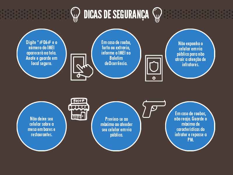 Além das ferramentas tecnológicas, algumas medidas de proteção devem ser consideradas pelas pessoas, sobretudo para evitar problemas. A atenção deve ser redobrada ao usar os aparelhos, por exemplo, em locais e horários de pouco movimento de pessoas. Relembre, a seguir, algumas dicas de segurança da Polícia Militar para esses casos (tabela acima).
