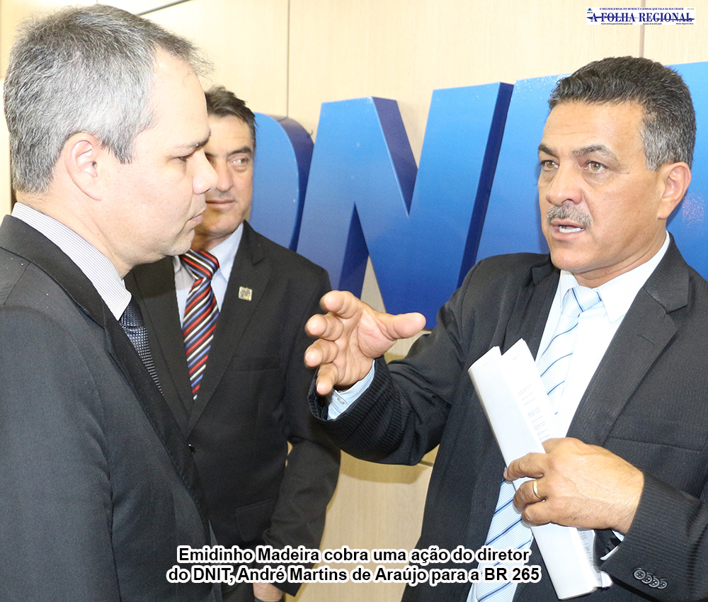Os trechos que restam para serem asfaltados da BR-265, entre os municípios de Alpinópolis e Jacuí, poderão ser concluídos pelo Governo Federal. A informação foi passada pelo diretor de Planejamento do DNIT, André Martins de Araújo, ao deputado Emidinho Madeira, durante reunião na sede do DNIT, em Brasília, no dia 15/08. De acordo com o Ministério dos Transportes existe a possibilidade da BR-265 ser concluída no próximo ano, pois as obras do PAC (Programa de Aceleração do Crescimento) entrarão como prioridade no Programa Avançar, a ser lançado em breve pelo Governo Federal. O diretor do Dnit também alertou para a questão política e esclareceu que é importante um trabalho da bancada mineira na Câmara Federal para que se priorize no orçamento na união a conclusão da estrada.