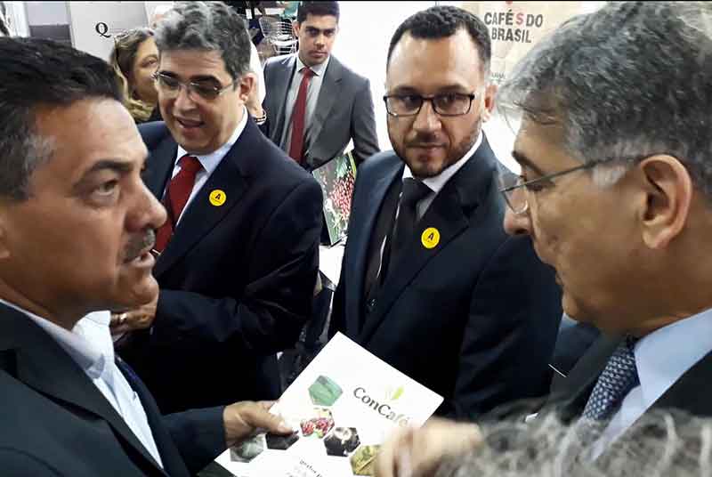 O estande do ConCafé foi muito prestigiado. Nada menos do que o próprio governador Fernando Pimentel, acompanhado do presidente da Codemig, Marco Antônio Castello Branco, o secretário de Estado de Agricultura, Pedro Leitão, visitaram o espaço, ocasião em que garantiram a formalização do convênio com o consórcio. Foram registradas também a presença do presidente da Cooxupé, Carlos Paulino, uma infinidade de prefeitos e vereadores e pesquisadores do setor da cafeicultura.