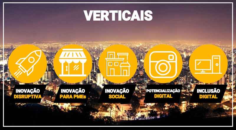 As ações estão divididas nas verticais: inovação disruptiva, inovação para micro e pequenas empresas, inovação social, potencialização digital e inclusão.