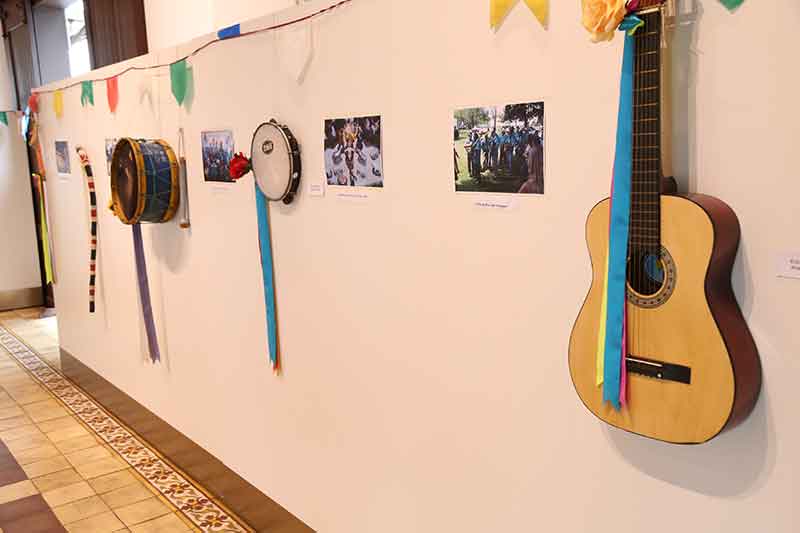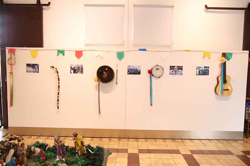 Instrumentos musicais e acessórios também estão presentes, como caixas, viola, pandeiro, uniforme, máscaras e bandeiras.