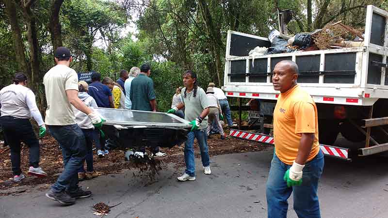 Garrafas vazias, pneus, pedaços de madeira, sofás e até um aparelho de TV: tudo isso foi retirado da mata, ao lado da estrada de acesso à estátua do Cristo Redentor, no bairro Vila Rica. O mutirão realizado no último sábado, 28, fez parte das ações da Semana de Mobilização Nacional de Combate ao Aedes aegypti, que incluíram blitz educativas e atividades em escola. "A conscientização da população é fundamental porque nós retiramos uma grande quantidade de lixo e entulho de uma área que tem coleta de lixo três vezes na semana, que tem coleta seletiva, que tem atendimento do cata-treco justamente para evitar essas situações que geram água parada e a consequente proliferação do mosquito Aedes aegypti", explicou Márcia Helena Geremias de Paula, supervisora geral da Vigilância Ambiental.