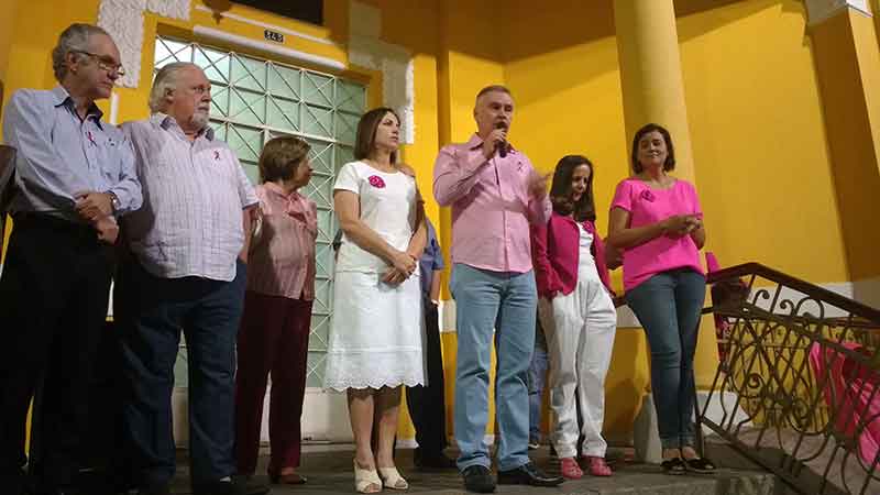 Autoridades, servidores públicos municipais e a população em geral participaram da abetura oficial do Outubro Rosa na escadaria da Prefeitura, no início da noite de domingo (1º). O secretário de Saúde Carlos Mosconi, abriu a solenidade, falando da importância da prevenção.